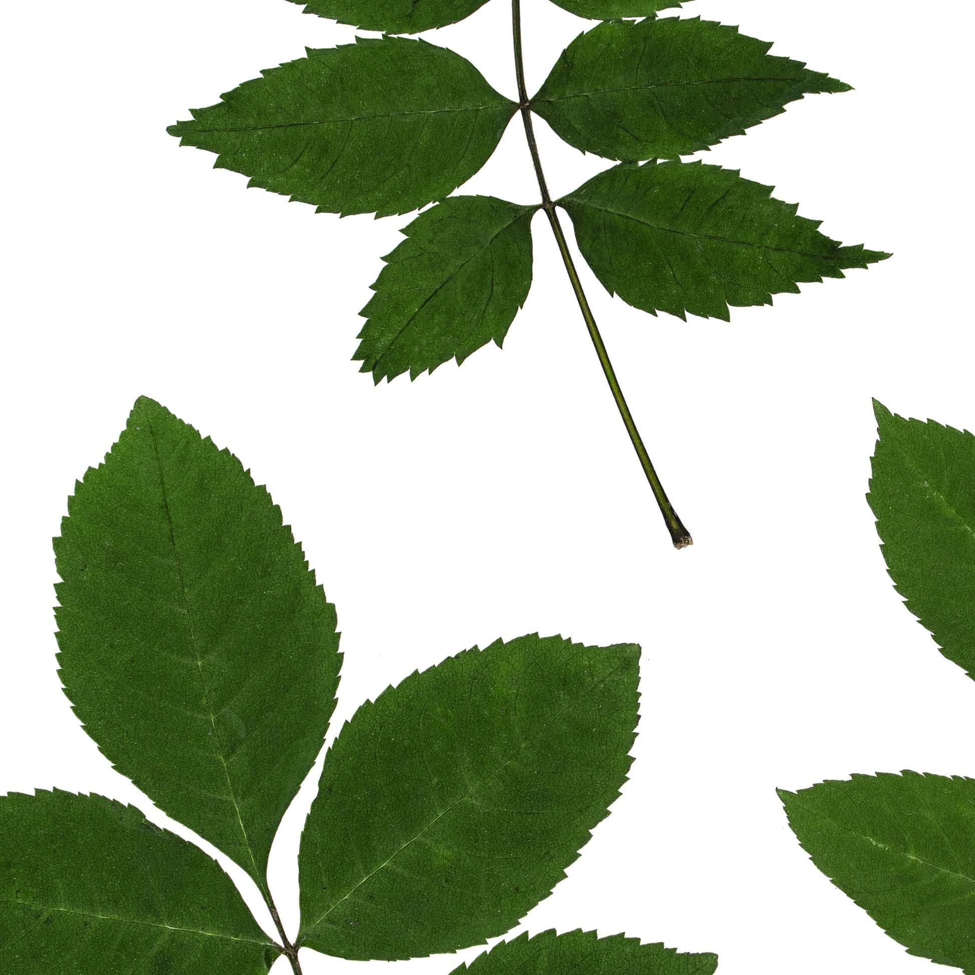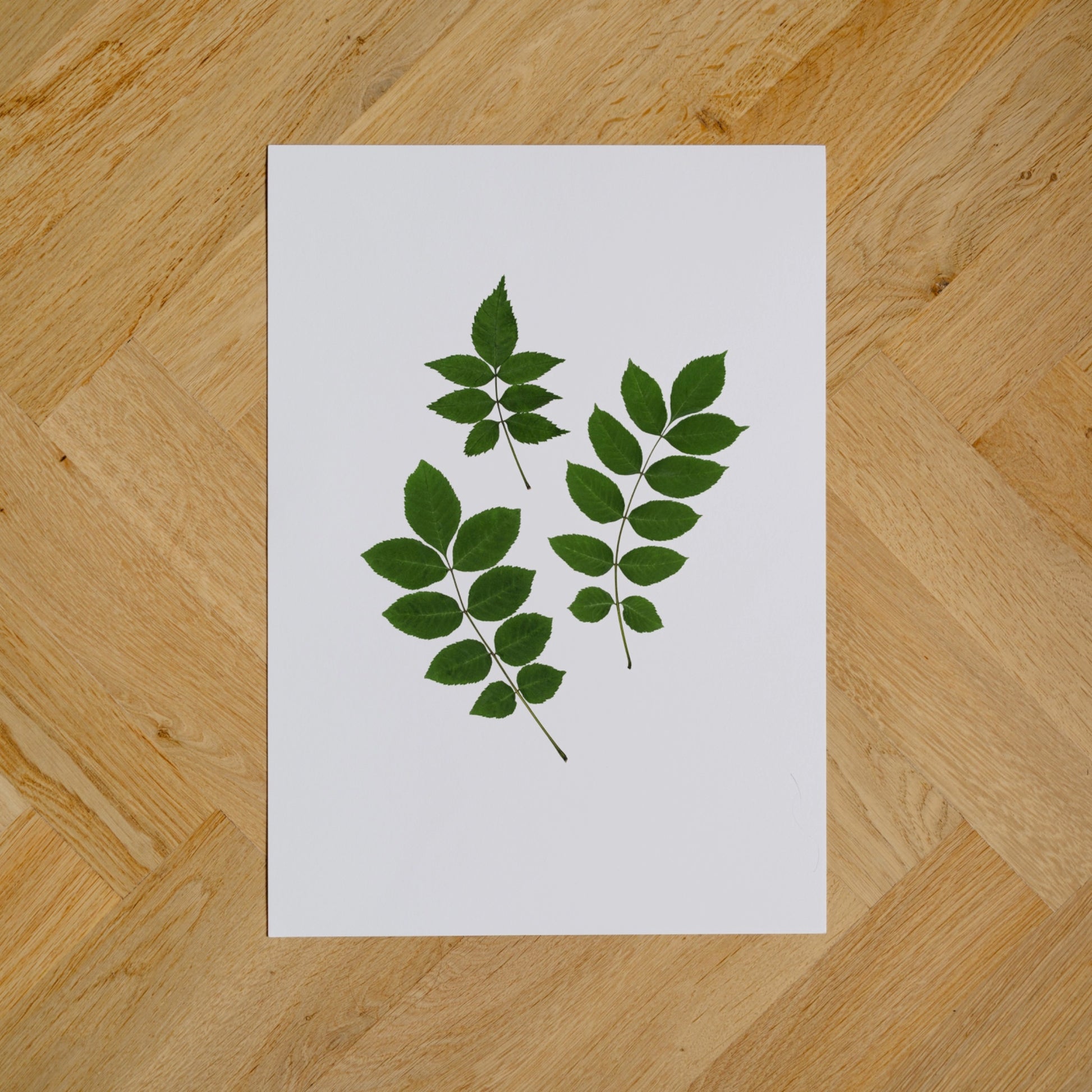 Pressed Irish Ash - finely detailed photographs of real Ash leaves, carefully gathered, pressed, and arranged before being photographed and printed on archival fine-art paper.