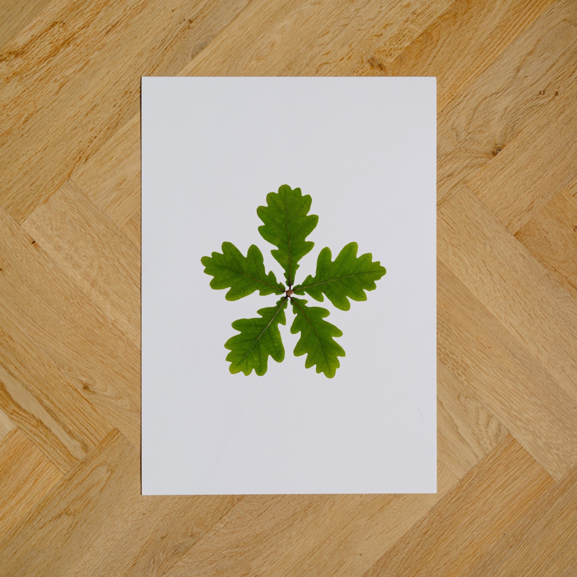Pressed Irish Oak Leaves - finely detailed photographs of real oak leaves, carefully gathered, pressed, and arranged before being photographed and printed on archival fine-art paper.