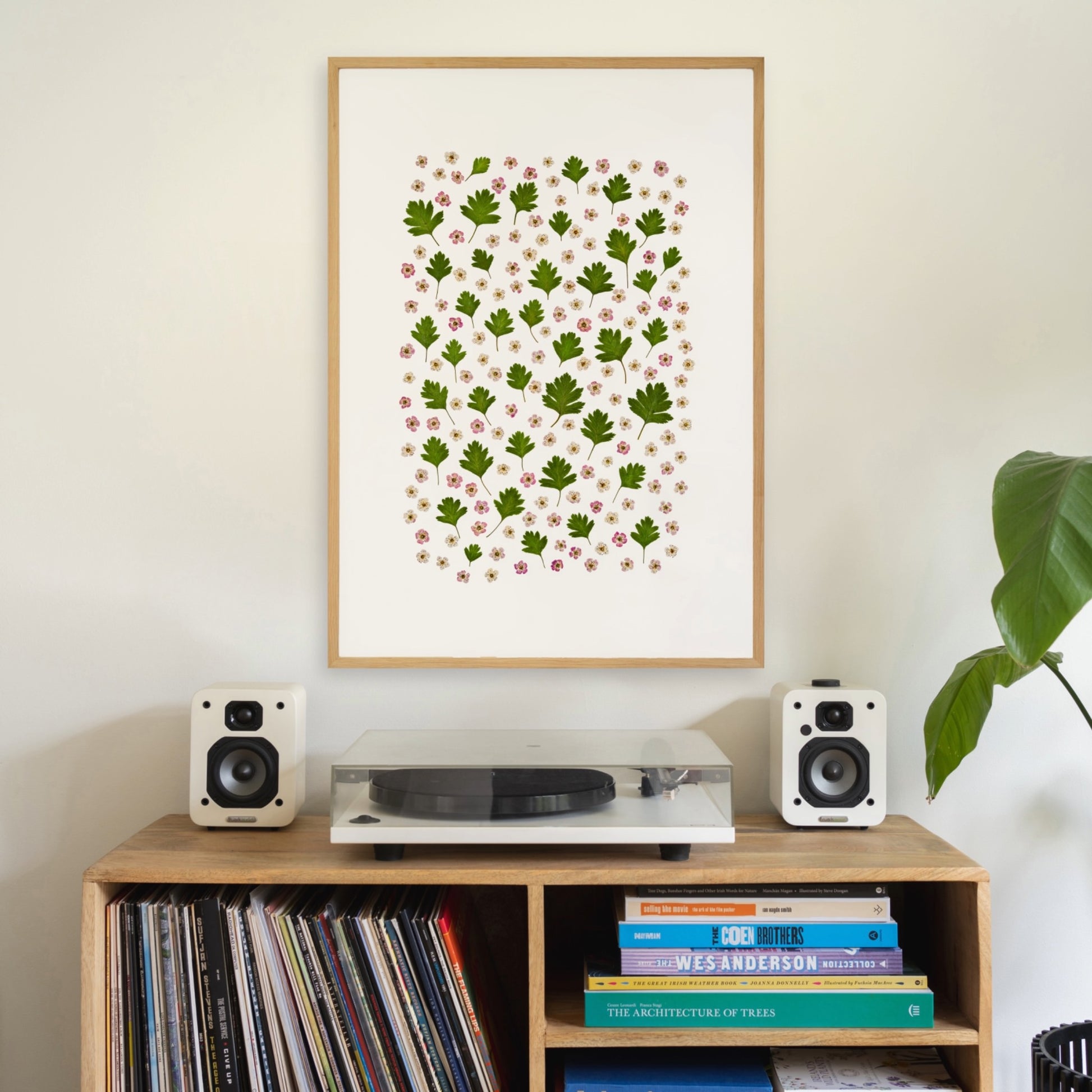 Each piece begins with leaves and flowers carefully gathered and hand-pressed over several weeks. Once dried, they are arranged into botanical artworks and photographed, before being reproduced as fine-art prints.
