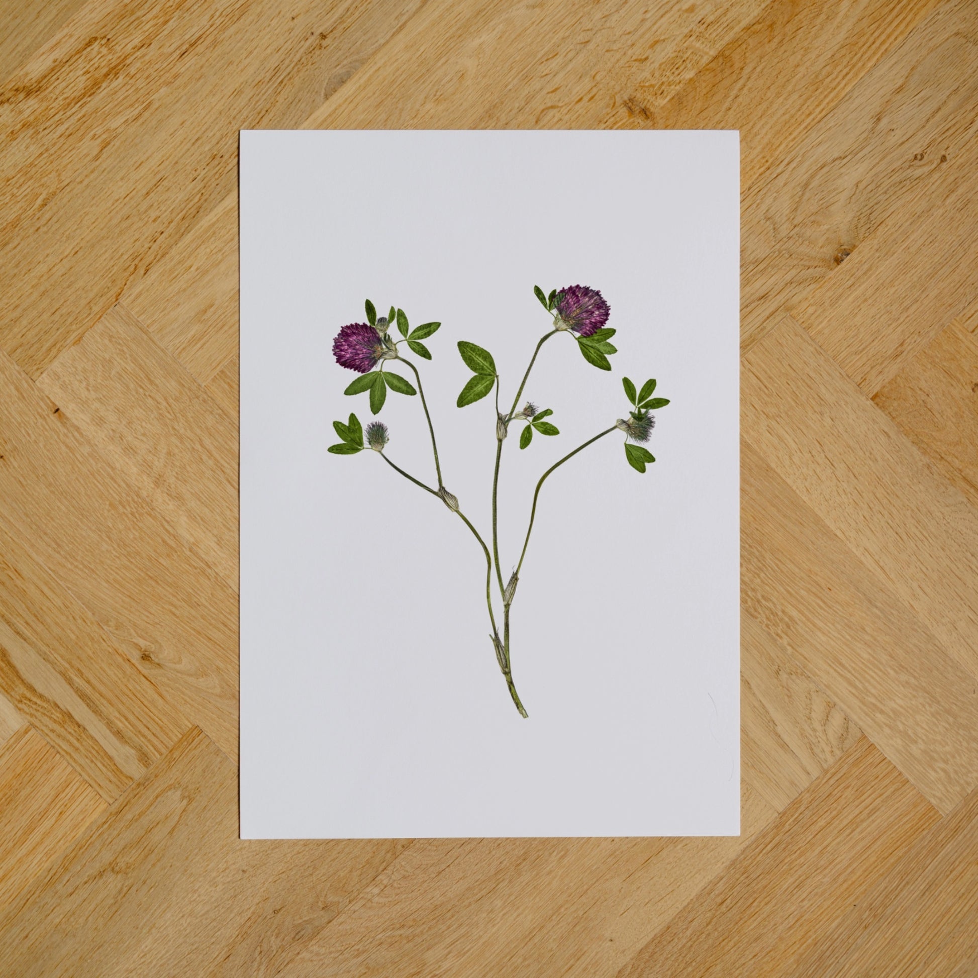 Pressed Irish Red Clover - finely detailed photographs of real red clover, carefully gathered, pressed, and arranged before being photographed and printed on archival fine-art paper.