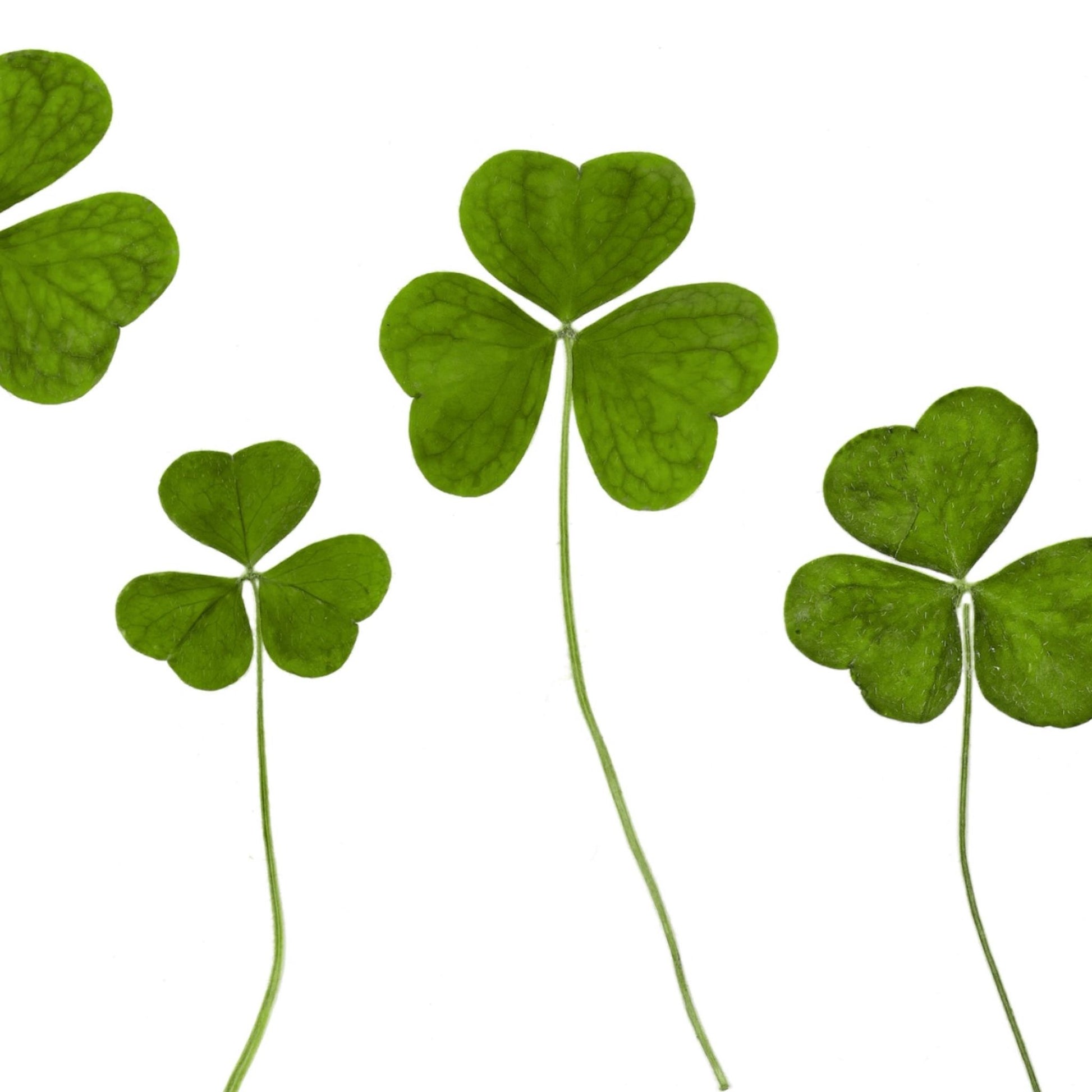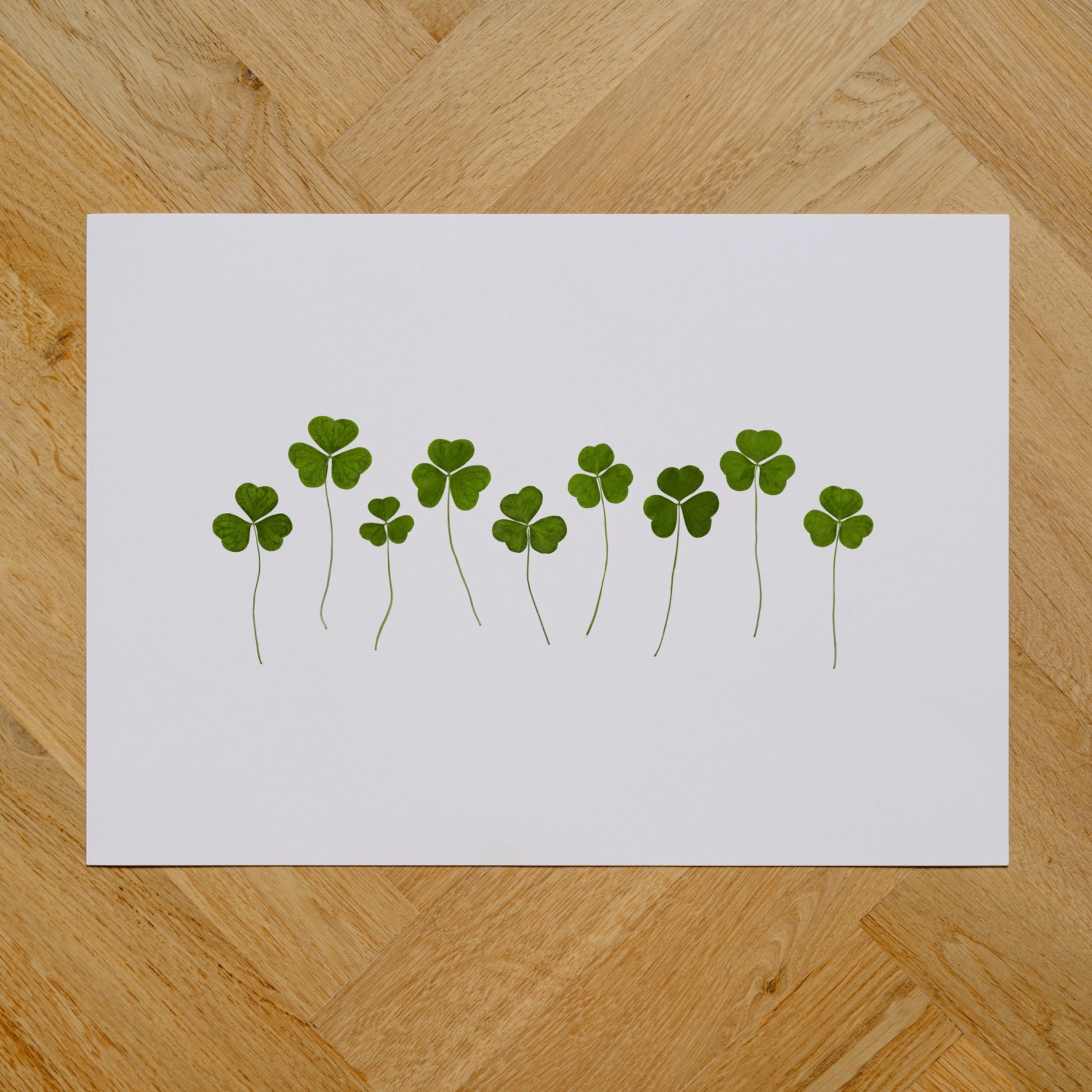 Pressed Irish Shamrocks - finely detailed photographs of real clover, carefully gathered, pressed, and arranged before being photographed and printed on archival fine-art paper.