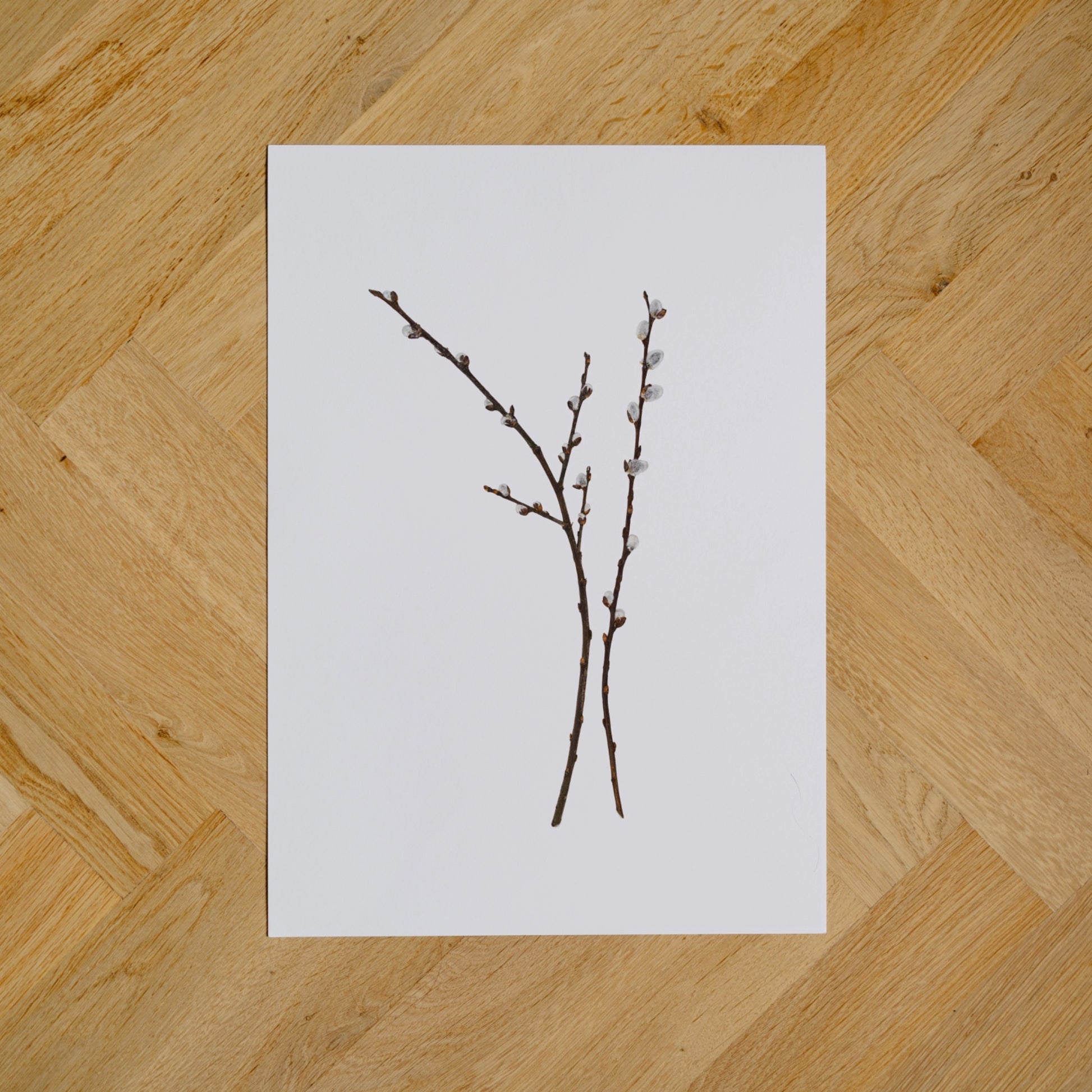 In Irish tradition, willow branches have long been linked with healing, water, and protection. Brought indoors in springtime, they marked new beginnings and were often passed to travellers for good luck. Pressed and photographed here in fine detail, this piece honours both their natural elegance and the long traditions that surround them.
